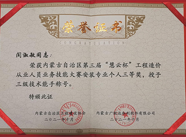 我司闫淑敏获得《内蒙古自治区第三届“慧云杯”米兰体育网页版登录界面【中国】有限公司从业人员业务技能大赛》个…